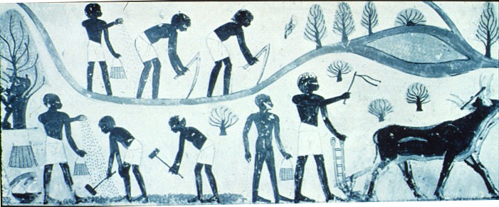 about 3600 BC, agriculture appears to have begun in the valley alluviums of the Nile.